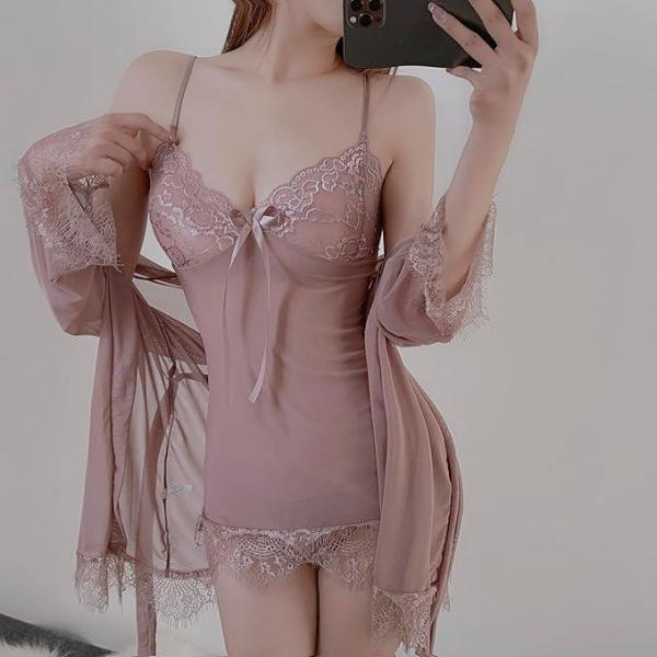 ベビードール セクシーランジェリー 花柄レース 透け 可愛い ガウン付き キャミソール ネグリジェ ハーフスリップ セクシー 下着 3点セット8006zi