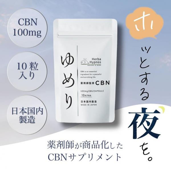 【薬剤師完全監修】ゆめり 1粒CBN100mg含有(CBN1000mg/10粒) 国内製造【エキストラバージンオリーブオイル溶解CBNサプリメント】